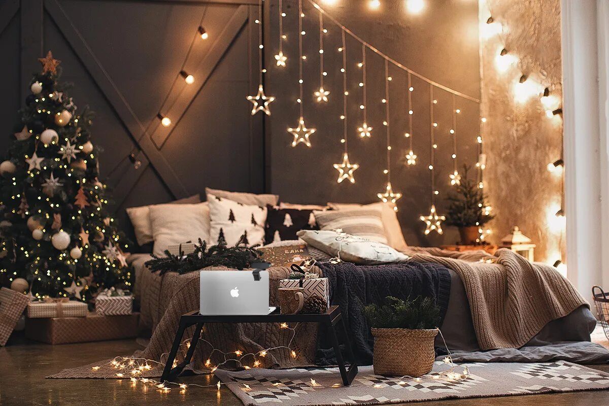 - Enrole as luzes de Natal no galho, começando pela base até a ponta.
