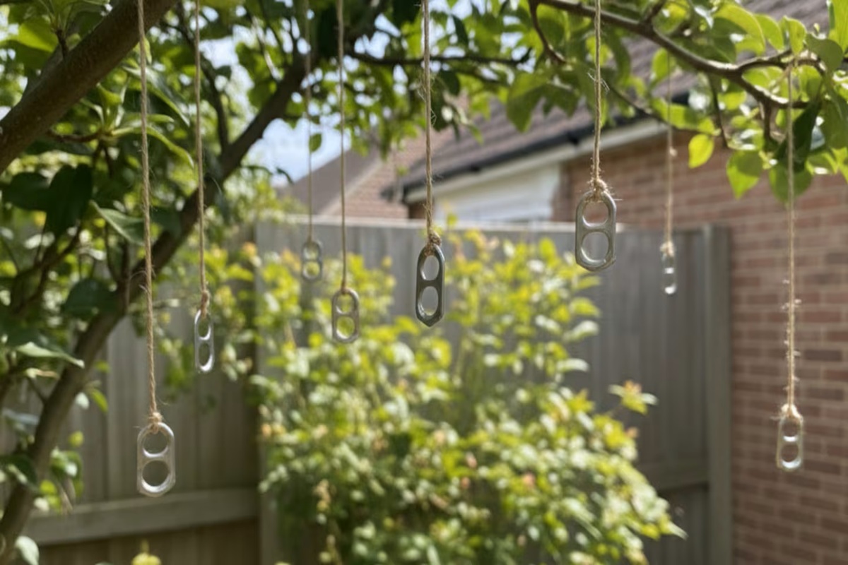 Este pequeno truque é ideal para quem tem problemas com pássaros no jardim, como pombos, periquitos ou pardais. Porquê? As tampas, por serem metálicas e refletoras, criam reflexos de luz intensos que incomodam os pássaros, e o som suave, mas intermitente, que emitem ao moverem-se com o vento serve como um sinal de aviso. Não causam danos aos animais: apenas os afugentam de forma natural, impedindo-os de pousar, construir ninhos ou sujar certas áreas do jardim.